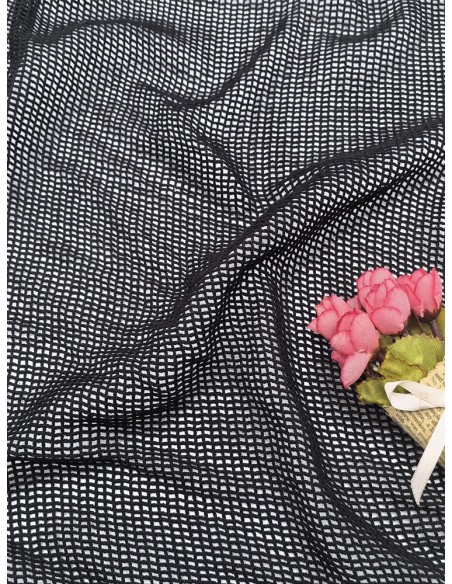 Това ефектно перде тип мрежа в черен десен съчетава модерен стил с въздушна лекота. Изработено от полиестрена материя с прозрачна текстура и фина квадратна структура, то е идеално за помещения, в които търсите баланс между дискретност и естествена светлина.