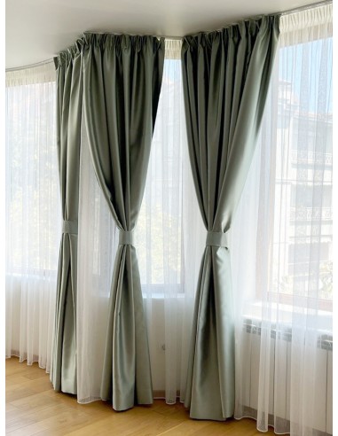 Тази завеса в нежен тюркоазен нюанс е чудесен избор за модерни и светли пространства. Изработена от блекаут материя със сатенен финиш, тя не само придава елегантност и мек блясък, но и осигурява до 90% затъмнение – идеално за комфорт и спокойствие у дома. В комбинация с лек, пропусклив воал, резултатът е стилен и хармоничен интериор, в който светлината и уютът се срещат в съвършен баланс. Състав - 100% полиестер. Височина на текстила 270см.