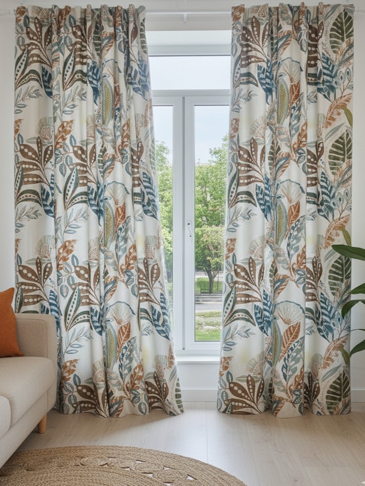 - Жив флорален дизайн – съчетава зелени, сини и теракотени тонове в артистичен баланс.
