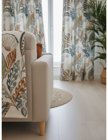 Този флорален текстил е създаден, за да внесе живот и настроение във всеки интериор. Мотивите в земни и морски нюанси – зелено, синьо, кафяво и охра – създават естествена хармония и усещане за свежест. Материята е плътна, с красива структура, подходяща както за завеси, така и за декоративни възглавници. Перфектен избор за тези, които искат да внесат природа, топлина и лек артистичен дух у дома си. Състав - 100% полиестер. Височина на текстила - 300см.
