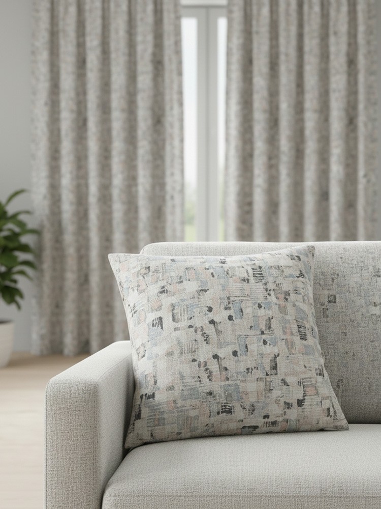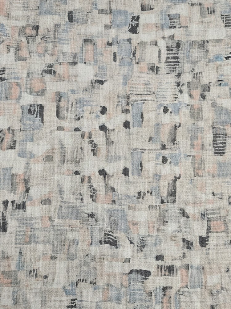 Тази модерна завеса впечатлява с нежна, абстрактна шарка, напомняща на художествено мазилка или миниатюрни тухлички в пастелно розово, синьо и сиво. Дизайнът е едновременно спокоен и артистичен – перфектен за интериори, които търсят баланс между комфорт и стил. Материята е мека, плътна и стои изключително добре на падане, а естественото съдържание на памук дава усещане за уют и домашна топлина. Максимална височина на текстила - 280см. Състав - 60% полиестер; 40% памук.