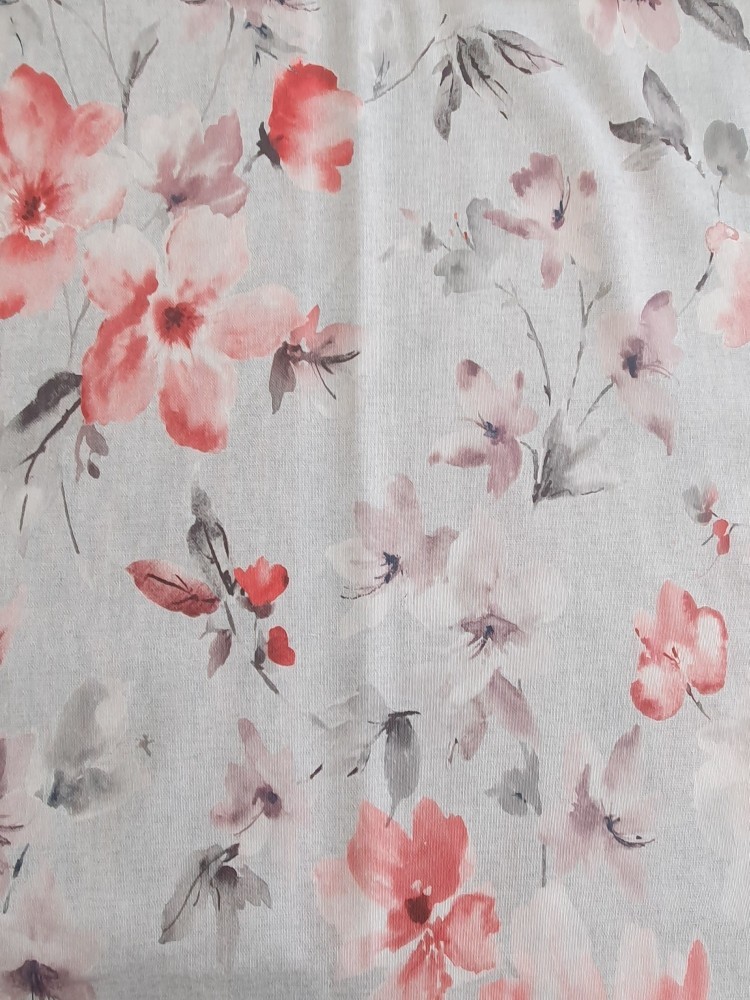 Добавете уют и романтика в интериора си с този изключително фин текстил с ефирна акварелна флорална шарка в розово, прасковено и сиво. Дизайнът е едновременно деликатен и впечатляващ — сякаш рисуван на ръка върху мека и плътна основа. Стои прекрасно като завеси, покривки и декоративни възглавници, носейки усещане за спокойствие и хармония в дома. Състав - 60% полиестер; 40% памук. Височина на текстила - 280см.