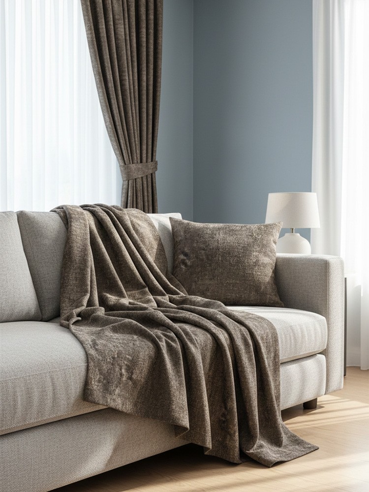 - Меланжирана структура с бежови нишки, които подхождат идеално на кафявата основа.