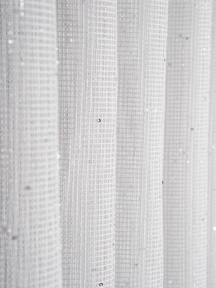 Светлина, текстура и блясък в съвършен баланс. Текстил, който говори без думи – създаден от лека и финa мрежа и нежно разпилени пайети, които улавят светлината и я връщат обратно с меко сияние. Подходящ както за дневна или спалня, така и за артистични пространства. Пайетите добавят светлинна игра, без да натрапват, а мрежестата текстура носи усещане за архитектурност и стил. Максимална височина на текстила - 280см. Състав - полиестер.