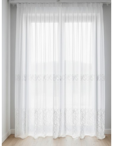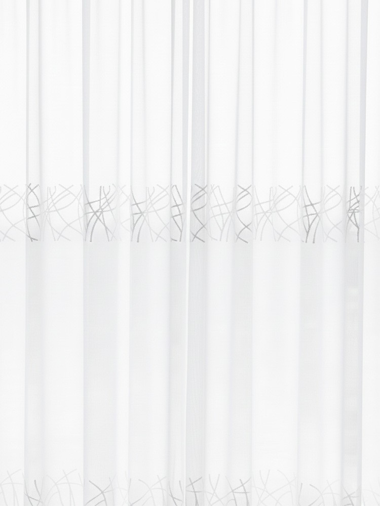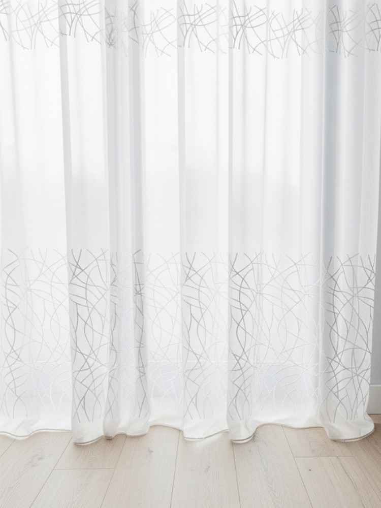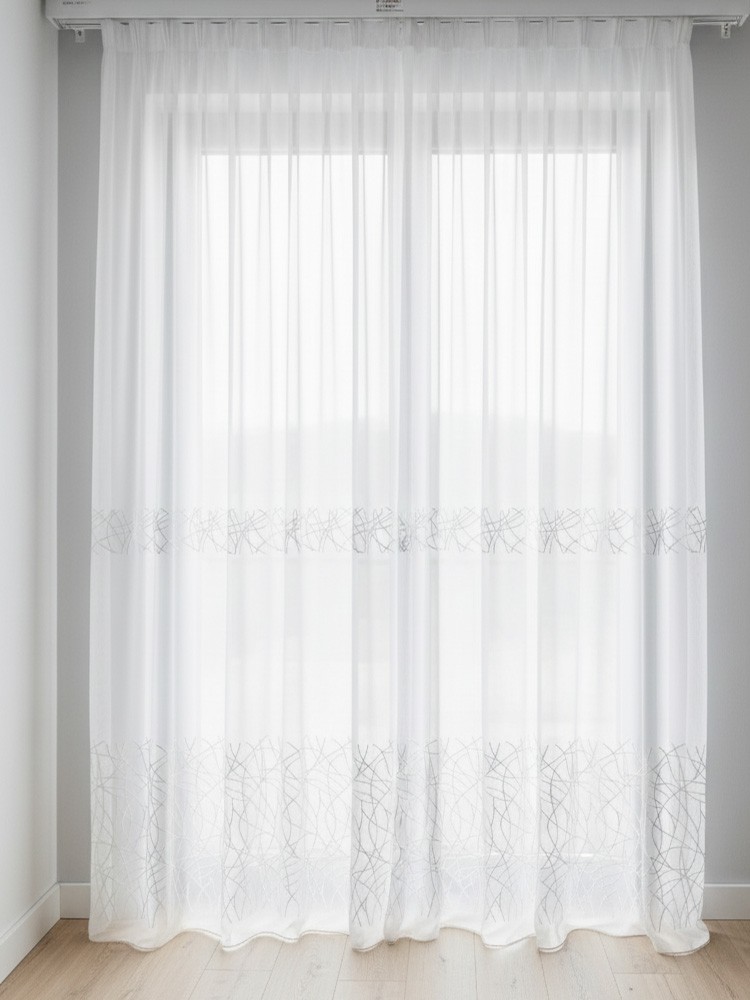 Фино перде с изтънчена декоративна шарка в бял цвят, което внася елегантност и светлина във всяко помещение. Материята е нежна и полупрозрачна, пропуска дневната светлина, без да отнема от уюта и дискретността. Декоративният кант с фини, преплетени линии придава съвременен характер и изтънченост. Подходящо е както за самостоятелно поставяне, така и в комбинация с едноцветни или blackout завеси за по-завършена визия. Състав - 100% полиестер. Височина на плата 280см.