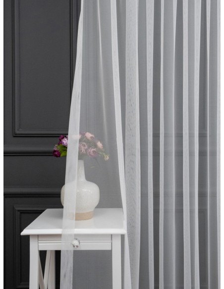 Минимализъм с меко излъчване – тънко перде от фина матова мрежа, което пречупва светлината с елегантна лекота. Подходящо както за модерни, така и за класически интериори. Пердето е завършено с оловна нишка, която осигурява перфектено падане и тежест. Максимална височина на текстила 280см.